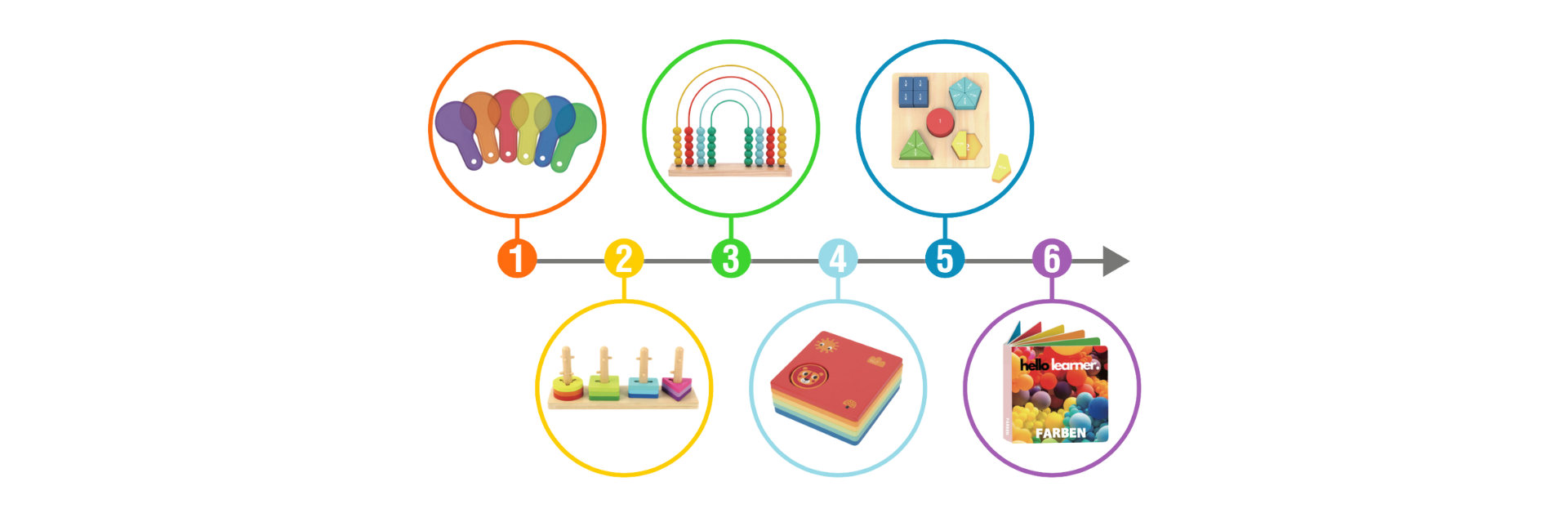 Schau dabei zu wie dein Kind neugierig das Lernmeisterset™ nutzt und mit jedem Spielzeug neue Fähigkeiten erlernt!